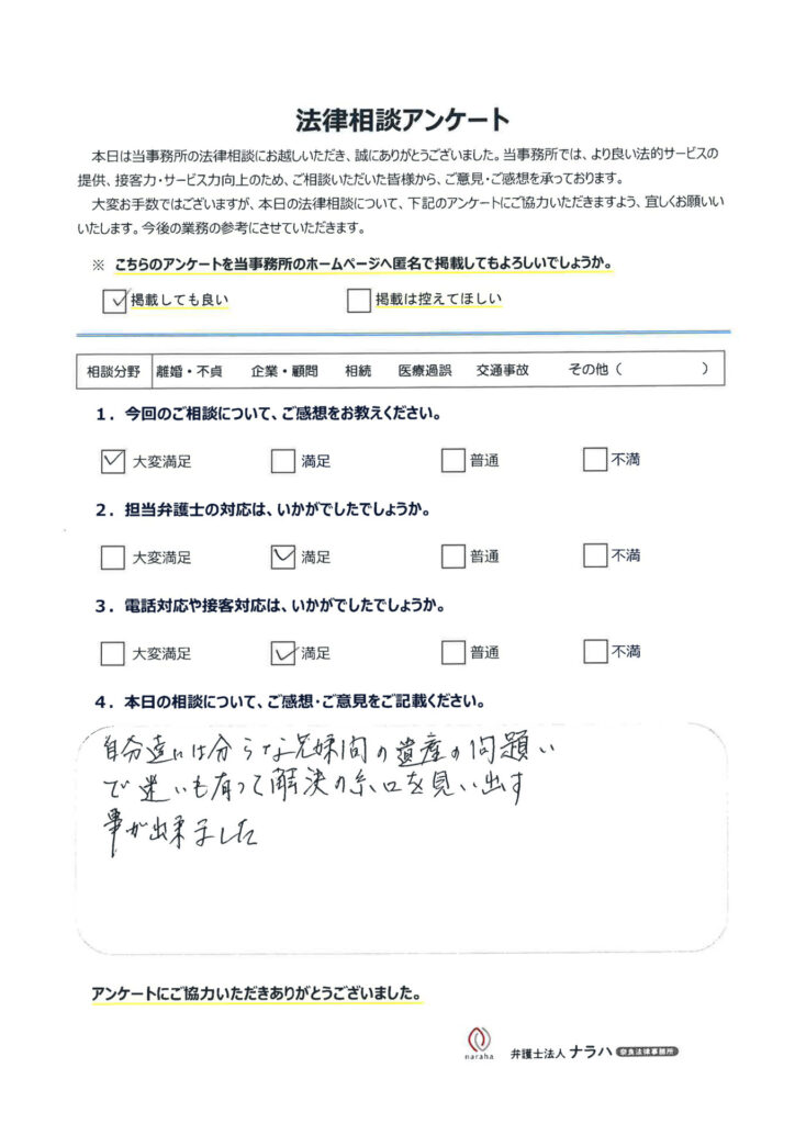 自分達には分らな兄妹間の遺産の問題で迷いも有って解決の糸口を見い出す事が出来ました