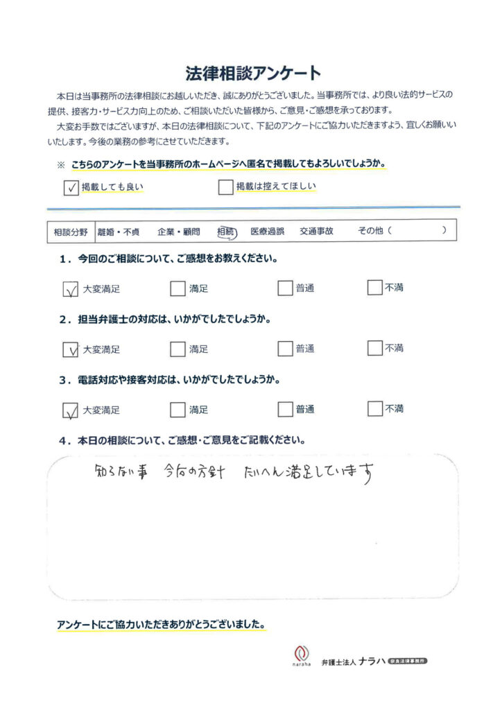 相談の結果、弁護士に依頼されるかどうかは、相談者の皆様の自由です。当事務所から、相談者の皆様の意に沿わない勧誘を行うことはありません。